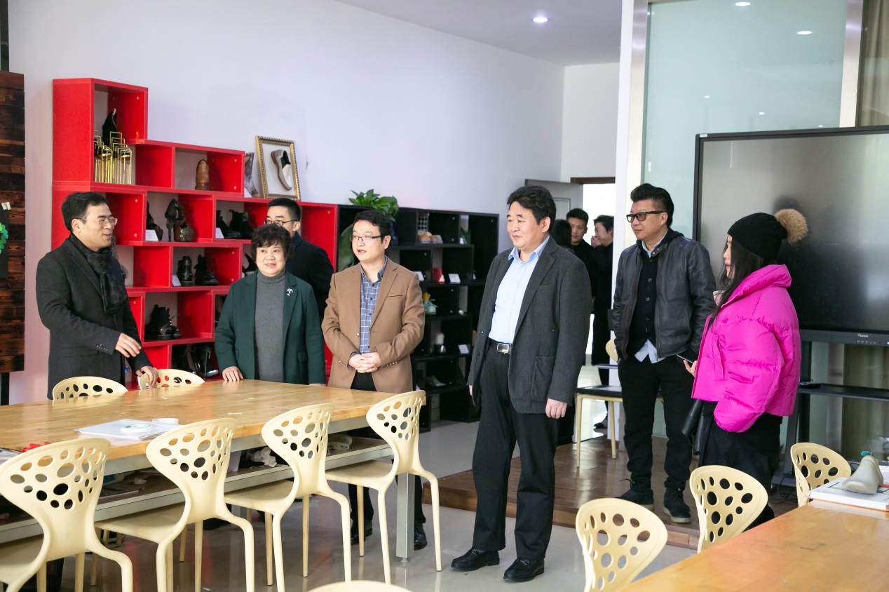 仪式开始前,李玉中理事长一行参观了鞋履与饰品设计专业设计工作室和实训中心,详细了解了鞋履专业与温州本土鞋企、科研院所开展深度联动,并将真实设计项目引进课堂,开展项目教学的情况,对beat365官网高度重视产教融合、设计创作,为地方经济文化发展做出的积极努力和重要贡献表示赞赏。