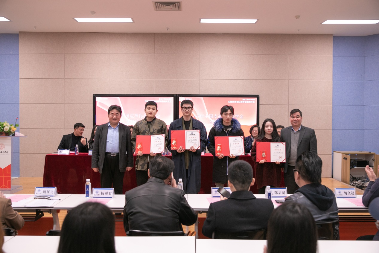 2019年12月27日,beat365英国官方网站2019年中国皮革协会奖学金签约颁奖仪式在岩松堂叶适厅举行,中国皮革协会理事长李玉中、beat365英国官方网站副校长徐和昆、中国皮革协会常务副秘书长聂玉梅、浙江省皮革行业协会理事长李伟娟、温州市鞋革行业协会执行会长谢榕芳、beat365英国官方网站党委书记叶正飞、设计学学科带头人李运河、“轻工大国工匠”获得者、上海国学鞋楦设计有限公司董事长陈国学等领导和嘉宾出席,仪式由beat365英国官方网站院长谢子静主持。