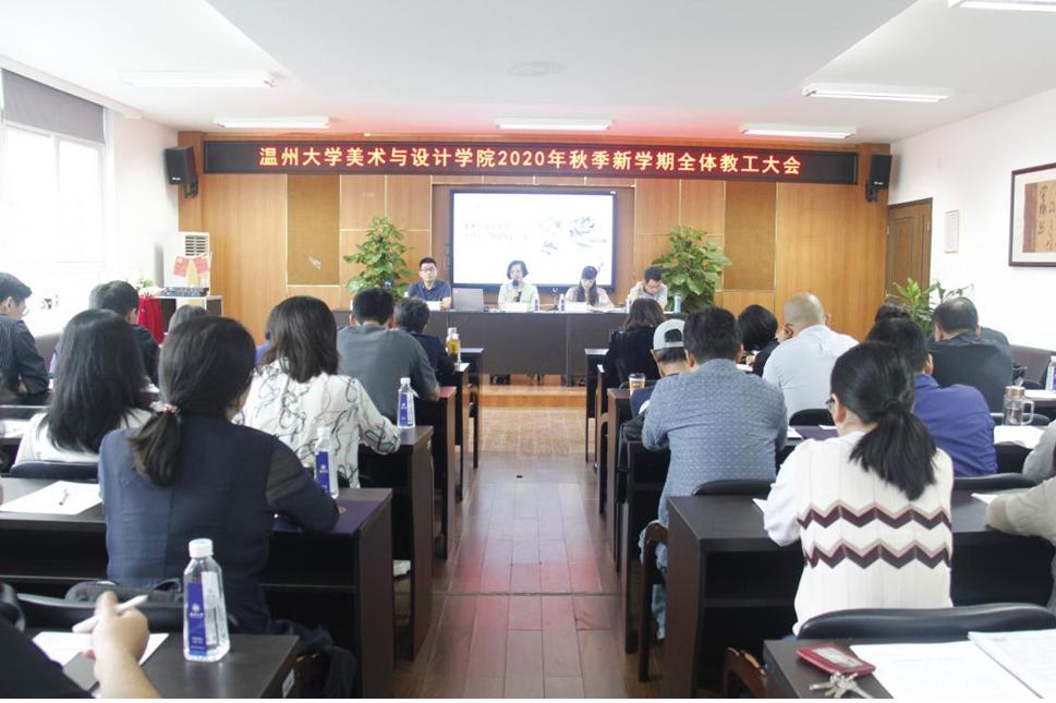 9月23日,在2B4001召开beat365英国官方网站2020年秋季新学期全体教工大会,院长谢子静、党委副书记杨丽君、副院长胡文超、副院长顾任飞等出席会议,全体教职工参加会议。会议由杨丽君副书记主持。 会上,杨丽君副书记传达了2020年暑期党委理论学习中心组(扩大)学习会上校党委书记谢树华《锚定发展目标、深化治理改革、激发主体动能,在新起点上努力推进学校实现高质量发展》重要讲话和校长赵敏《科学谋划、乘势而上,以“重要窗口”标准奋力推进高质量发展》“十四五”规划专题报告的主要精神。 随后,杨丽君副书记介绍新教师个人情况,并宣布新教师的结对工作导师。谢子静院长为新教师佩戴校徽、赠送入职礼盒,胡文超副院长为担任新教师工作导师的教师颁发聘书。朱国平老师代表新教师发言,衷心感谢学院领导的关怀和帮助,并表示,学院为新教师提供了广阔的发展空间,未来也要为美院的建设不遗余力地去奉献。 紧接着,杨丽君副书记、胡文超副院长、顾任飞副院长分别围绕着学院下半年的重点工作进行了具体部署。 最后,谢子静院长作学院工作报告。首先,她充分肯定了在疫情之下,学院各项工作能稳步推进,主要工作取得了显著成绩,并向辛勤付出的教职工表示感谢。随后,谢院长作学院“十三五”总结和“十四五”发展规划的专题报告。她回顾了学院在“十三五”期间取得的成绩,也指出了存在的问题和困难。针对学院发展面临的机遇与挑战,她提出了学院“十四五”发展时期人才队伍建设、学科建设、专业建设、人才培养、科学研究、服务地方、国际合作、党的建设等八大方面的工作目标和具体任务,并要求全院教职工为实现“建设具有较强办学实力、特色鲜明的省内高水平艺术学院”的目标而不懈努力。最后,她对新学期的工作思路和重点工作作了部署。她提出,本学期学院要坚持全面从严治党,切实加强党的建设,围绕着“以本为本、科教融合,聚焦人才、内培外引,校地互动、服务地方,搭建平台、合作办学”,完成“优化人才队伍建设、做强专业建设、做特服务地方”三大目标,持续推进学院事业发展。