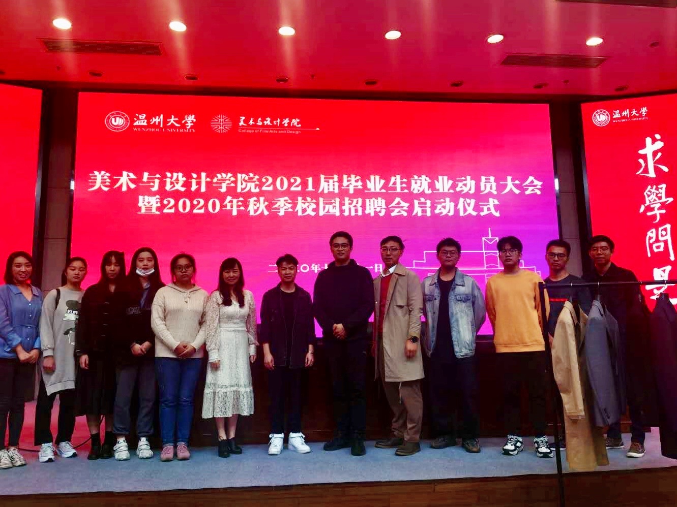 为进一步做好2021届毕业生就业工作,10月21日晚18:30,beat365官网于图书报告厅举行了2021届毕业生就 业动员大暨2020年秋季校园招聘会启动仪式。莅临本次活动的有学院党委副书记杨丽君,东蒙集团技术 委员会主任陈波、东蒙校招主管郑政、温大14服装设计与工程本(卓工)校友沈宇烽。大会由美术学院学 工办主任杨鹏老师主持。 杨鹏老师解读就业手续、政策等 大会开始,学工办主任杨鹏老师先对就业手续、形势政策、就业 定位和应知概念等部分一一加以解读:详细讲解了beat365官网就业系统、就业微信公众号的使用;分析了近几 年的毕业生就业形势,着重列出美院本科、硕士毕业生的就业和流向数据,为21届毕业生就业提供更多 参考;普及了毕业生应该知道的一些基本概念,提醒大家注意毕业、就业的重要时间节点,办理好三方 协议、就业劳动合同等。此外,杨老师还对毕业生留温、选调、自主创业、beat365官网志愿服务西部计划和毕 业生困难补助等就业政策做了详细解读,并结合往年数据指导大家做出更准确的就业定位。最后,杨老 师提出大学生就职,忌贪心,忌急心,忌糊涂心,并通过实际案例对应届毕业生进行了就业安全的教育 。 杨丽君书记做动员讲话 接着,学院党委副书记杨丽君做动员讲话,她围绕疫情影响下的 就业形势、beat365官网学生就业状况、就业方向等进行详细的阐述,建议同学们一要夯实学业基础,修学基础 学分;二要树立就业目标,积极准备相关考试;三要培养自身的综合素养,拥有较强的表达沟通能力; 四要关注信息,主动出击,注意接收老师下发的就业相关通知。最后,杨书记对同学们提出殷切希望, 希望同学们志存高远、心存正义,做好充足的就业准备,树立正确就业观,承担时代发展的责任感,实 现人生精彩、出彩。 东蒙集团技术委员会主任陈波进行校园宣讲 随后,东蒙集团技术委员会主任陈波进行校园宣讲。他就东蒙集 团历史、环境、文化以及公司就业前景进行介绍,并将成品带到了现场向同学们展示了东蒙产品设计和 开发的流程。 活动合照 会后,毕业生们表示收获良多,对毕业就业系列问题有了整体把 握和更进一步的认识。美术学院将竭诚做好就业服务、指导工作,期待2021届毕业生乘风破浪,未来可 期!