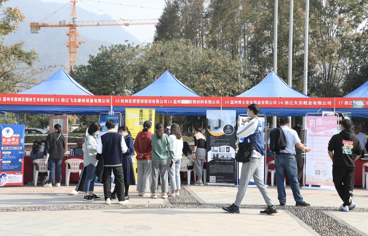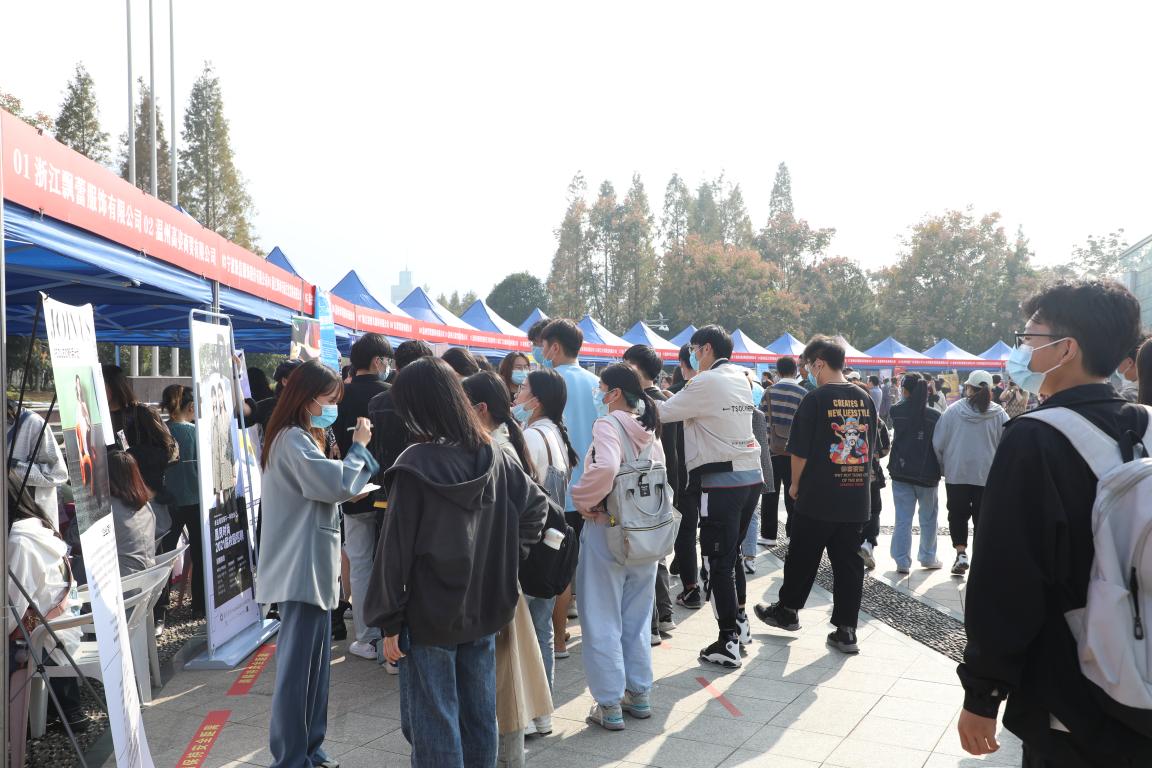 2020年11月8日下午,beat365官网2021届毕业生专场招聘会于大学生活动中心广场顺利举办。招聘会上,来自上海、杭州、宁波、台州、嘉兴等地区的64家单位,携2000余个岗位广揽英才,吸引了服装、设计、美术等校内外近千人才参加,其中beat365英国官方网站瓯江学院艺术设计分院、在温高职院校相关专业毕业生到会参与,场面热闹而有序。