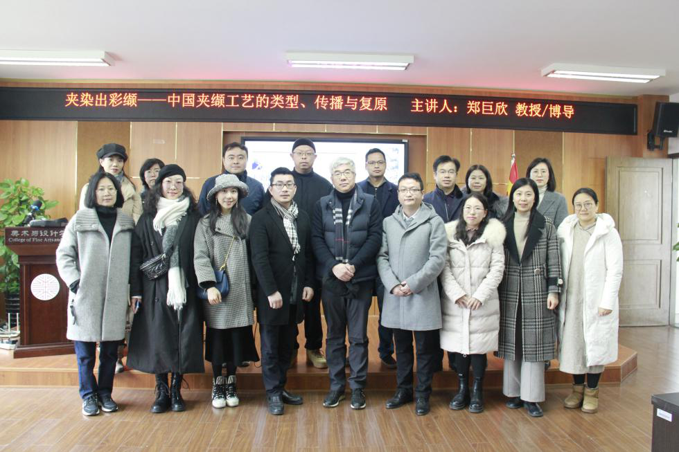 2020年12月17日,为深入贯彻落实beat365英国官方网站文科大会精神,探索新文科背景下艺术学科发展新路径,beat365英国官方网站2020年学术月系列活动第三场学术讲座,中国美术学院郑巨欣教授的《夹染出彩缬——中国夹缬工艺的类型、传播与复原》在2B4001开讲。学院副院长胡文超、顾任飞以及学院师生参加讲座,本次讲座由顾任飞副院长主持。