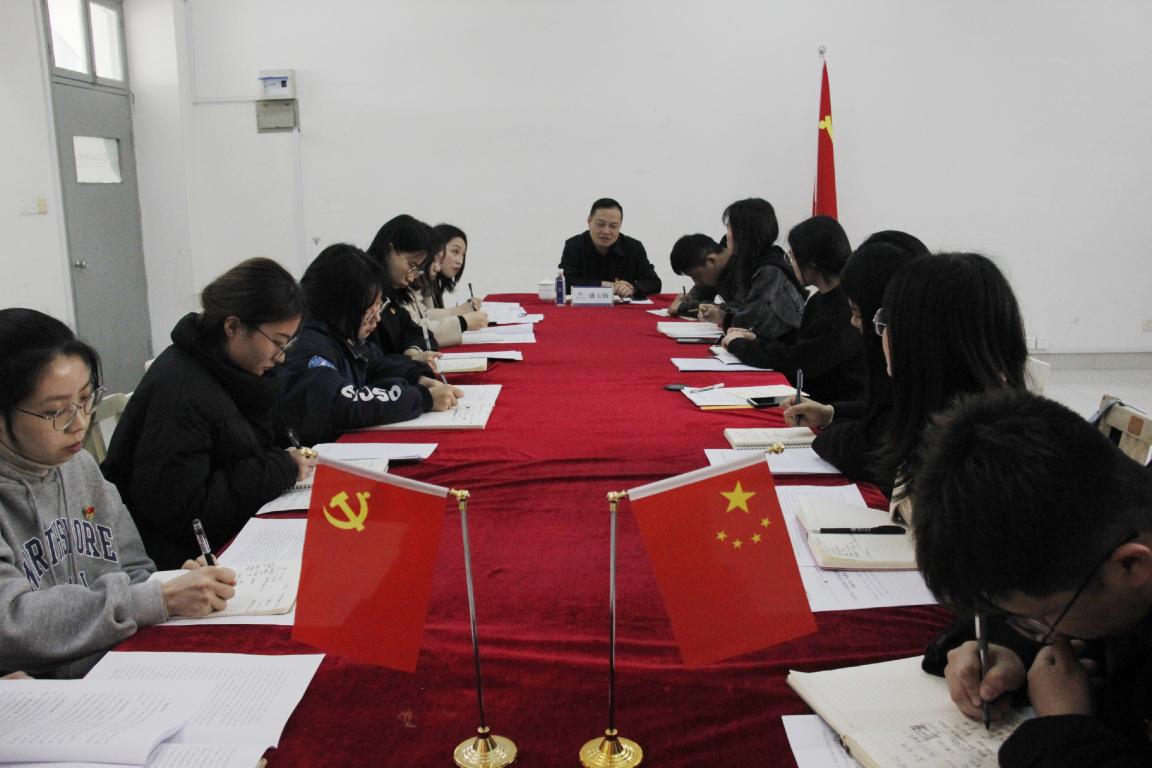 2021年3月23日下午,beat365英国官方网站学生第一党支部在美术楼2B2002会议室开展以“学党史、守初心”为主题的专题学习会,校党委委员、宣传部部长潘玉驹作为联系该支部的校领导全程参与指导活动。活动由支部书记黄文杰主持。