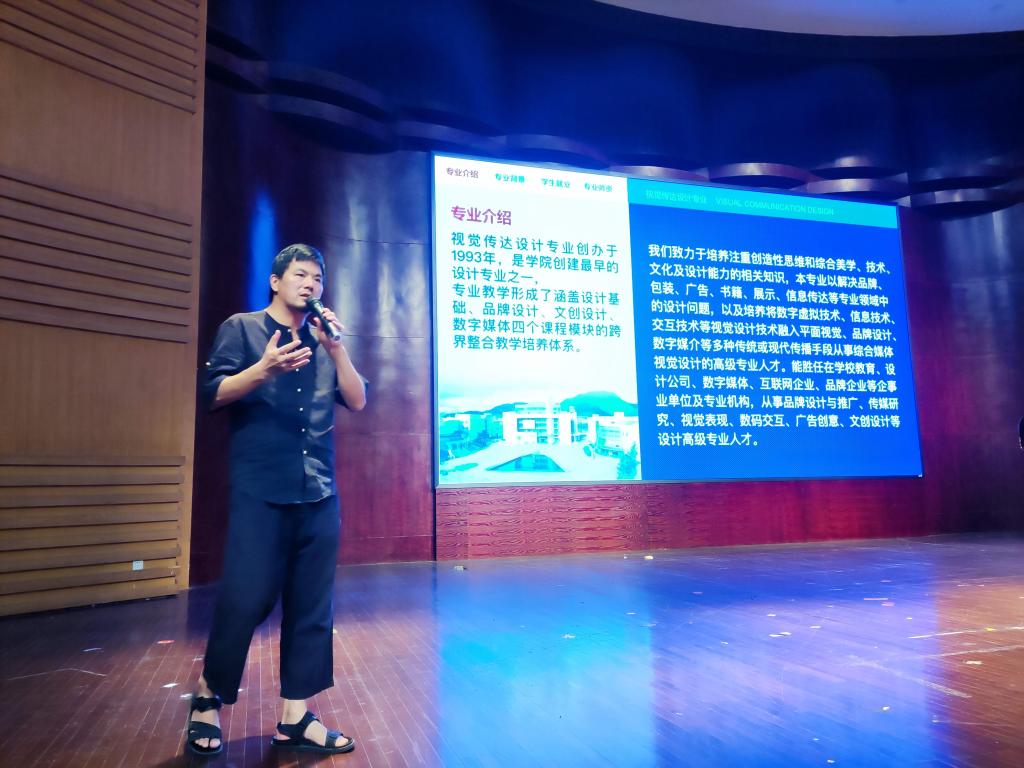 视觉传达设计系主任刘俊老师详细介绍了视觉传达设计专业,着重介绍了专业发展前景以及同学们在本专业将学习到的专业技能。