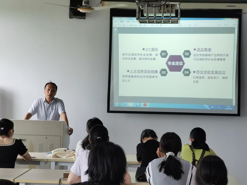 图:服装设计与工程专业负责人朱江晖正进行专业介绍