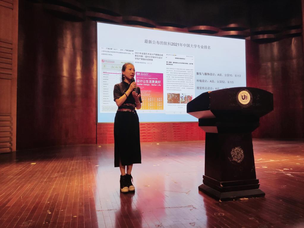 图:环境设计系主任黄玫玮正进行专业介绍