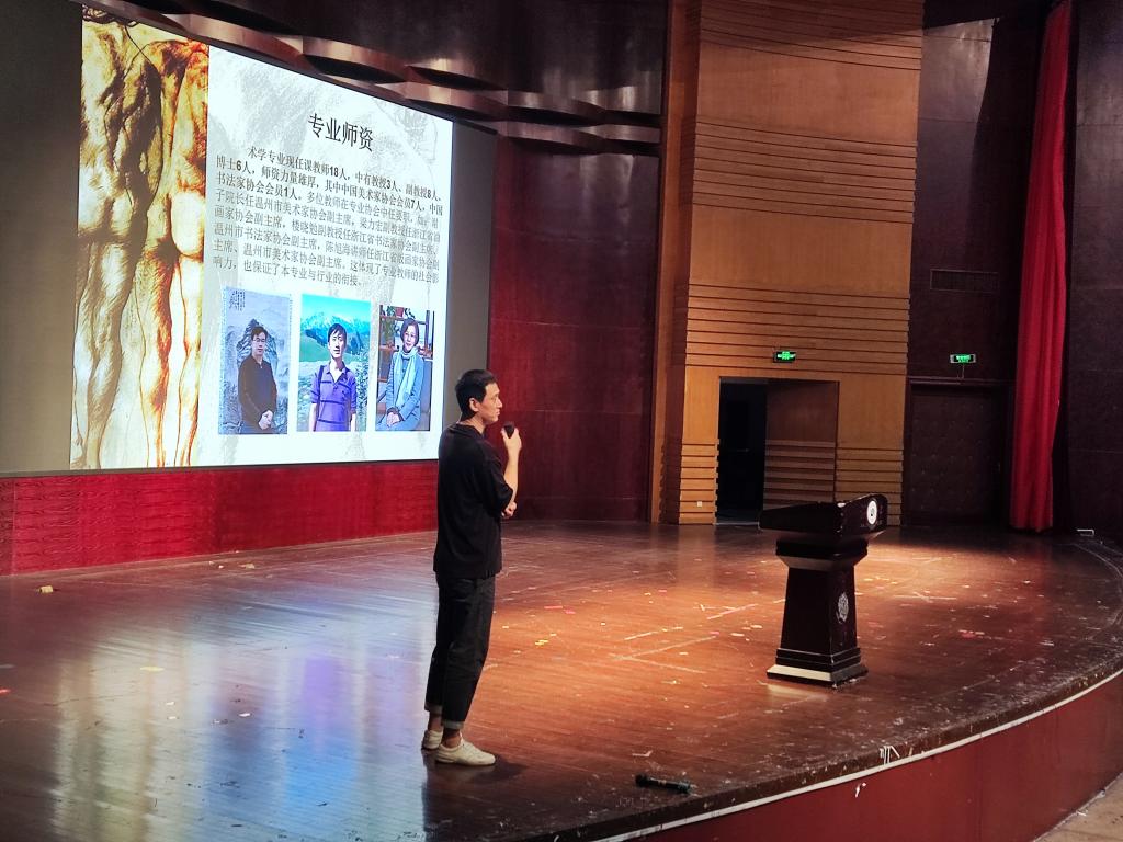图:美术系主任陈旭海正进行专业介绍