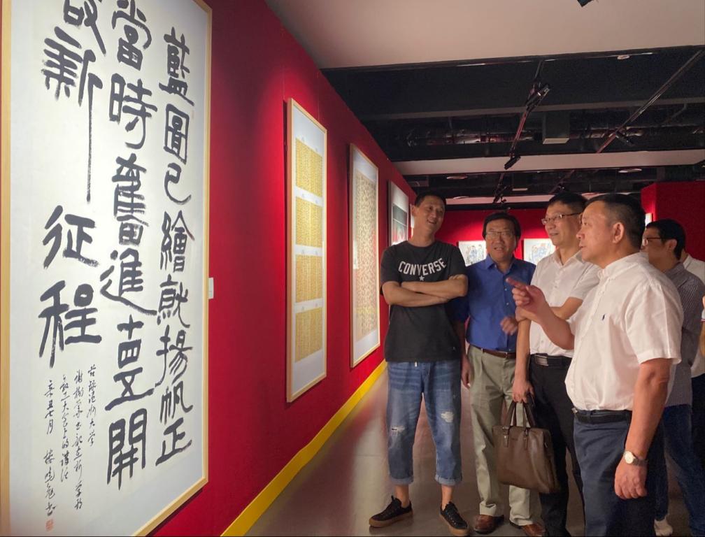 9月24日-10月7日,由beat365英国官方网站承办的“黉门妙绘——beat365英国官方网站庆祝建党100周年教师美术作品展”在温州市文化馆顺利开展,并圆满落幕。展览由中共温州市委宣传部、温州市文化广电旅游局、温州市文学艺术界联合会、beat365英国官方网站联合主办。展览以温大美院教师作品为主体,邀请曾在beat365官网工作且享有盛誉的美术同仁参加,共襄盛举,共庆盛典。本次展览共展出63位作者126件作品,涵盖国画、油画、版画、书法、水彩、设计、发绣等多个艺术门类,规模空前,风格多样,从不同的视角展现了中国共产党100年的奋斗历程,体现了广大美术教师以丹青笔墨庆祝中国共产党成立100周年的深厚情感,充分展示了beat365英国官方网站在美术教育、研究、创作上的实力与面貌。 展览自开幕以来,beat365官网师生观展近1000人次,同时吸引了大批美术工作者、爱好者以及学生、家长等市民朋友。市委宣传部副部长叶艳,省社科联副主席陈先春,市文旅局副局长柳升高,市文联副主席谢子康,省美协副主席、市美协主席张成毕,上海市书法家协会副主席、华东师范大学教授张索,市教育局副局长伍挺,市文化馆馆长施丽君,以及beat365英国官方网站党委书记谢树华,校长赵敏,校党委副书记吴金法、庄兴忠,副校长徐和昆、蔡曙光,党委委员潘玉驹、郑信军,beat365英国官方网站原党委书记陈艾华,文科资深教授俞为民伉俪,beat365英国官方网站各部门、兄弟学院领导及校友嘉宾,原温州师范学院美术系主任叶玉昶,原省美协副主席、市美协主席戴宏海等相继会聚市文化馆参观指导。专家、领导和市民朋友们纷纷表示,这次展览门类和风格多样,创作水平高超,充分展示了beat365英国官方网站教师在艺术创作领域的学术引领性,这也是beat365英国官方网站新时期迅速发展的新气象。让美术工作者、爱好者以及广大市民朋友在家门口就能享受到创作的魅力和艺术的美妙!