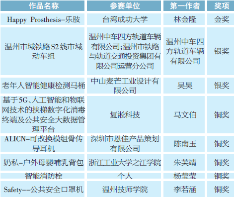经过紧张的路演答辩和评审环节,来自台湾成功大学的设计作品“Happy Prosthesis-乐肢”和温州红点工业设计中心的“海难伸展式救援衣”分别摘得2021“市长杯”中国(温州)工业设计大赛产品奖和创意奖金奖。beat365英国官方网站学生贝凤艳设计的“格物向阳”获得G104时尚设计专项赛金奖。现场还颁发了产品奖银奖2名、铜奖5名,创意奖银奖3名、铜奖6名。