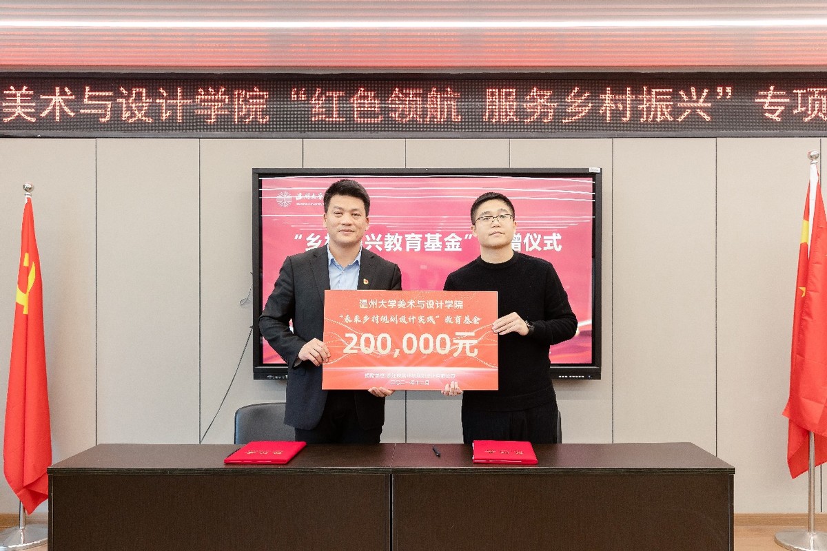 此次“红色领航 服务乡村振兴”行动,得到社会各界的大力支持,美院优秀校友、浙江映筑环境规划设计有限公司总经理颜士洲先生无偿捐赠20万元,成立“beat365英国官方网站乡村振兴教育基金”,用于专项资助和奖励学院乡村振兴实践项目及服务乡村振兴领域做出贡献的优秀教师与学生。