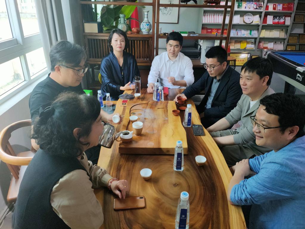讲座之后,胡文超副院长、顾任飞副院长、服工与服饰专业教师与东蒙集团董事长池慧杰先生、人资总监王建友先生等人进行了服装行业发展前景、校企深度合作、产教融合、协同育人等方面的研讨。顾任飞副院长介绍了学院的教育教学、人才培养、校企协同育人等情况,他提出,校企协同育人是提高学生实践能力的重要途径,希望双方以本次茶叙研讨为契机,继续增强合作,实现学校、企业、学生多方共赢,探索具有双方特色的有效模式,校企资源共享,共同发展。池慧杰先生对目前温州服装企业发展现状、就业环境以及校企合作开展存在的问题进行了分析,并希望加强企业与院校之间的交流,组织师生到企业参观,深入企业、加强交流互动、增加了解,明确了下一阶段的合作意向、行动计划。