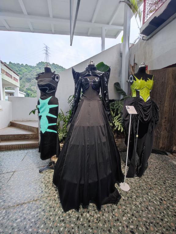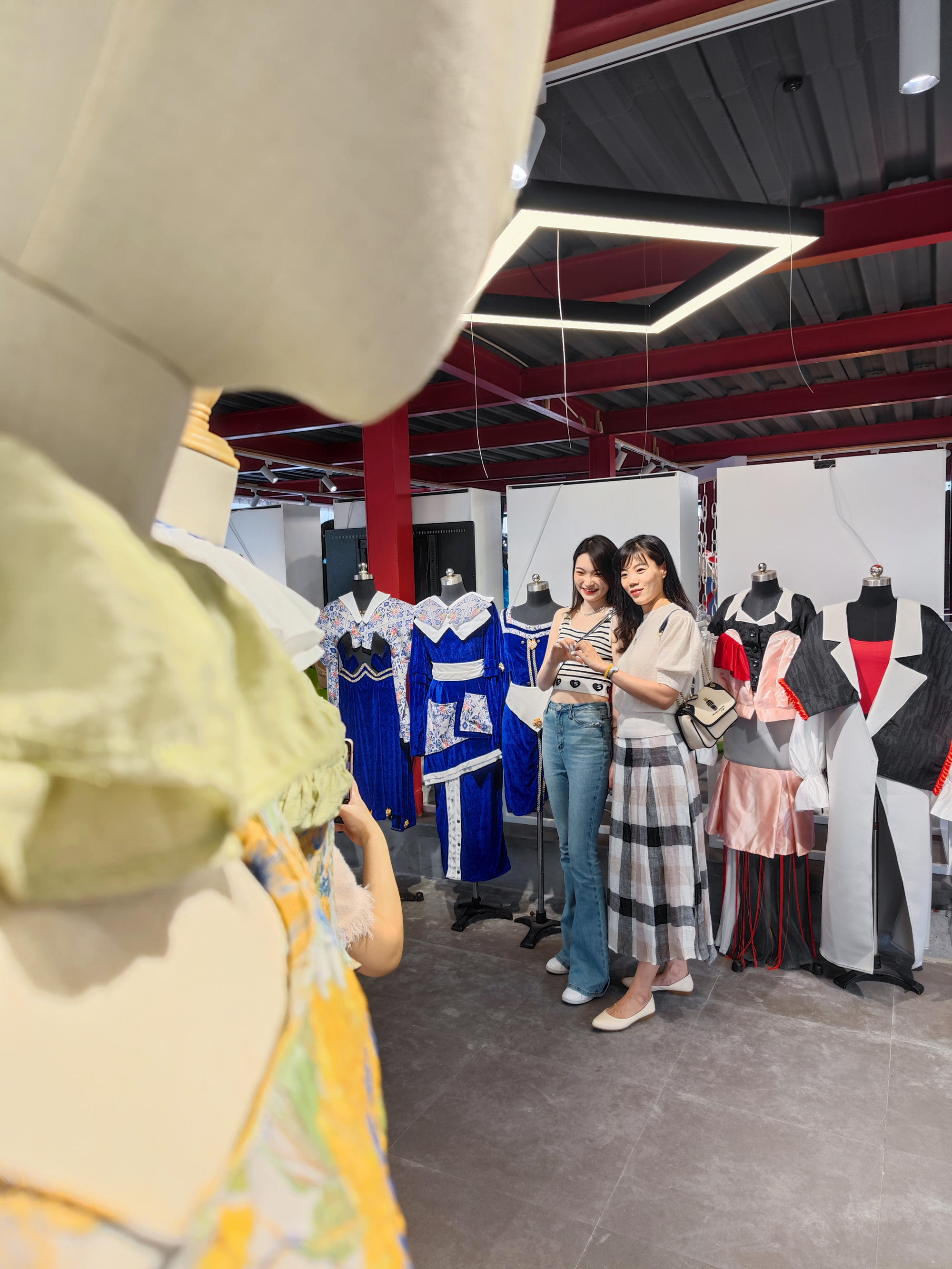 不少来参展的市民都在积极拍照,在丰富多彩的服饰之间摆出各种造型。一位来山根音乐艺术小村游玩的李女士说:“我是带孩子来山根玩,无意间发现今天这里有beat365英国官方网站毕业作品展,很惊喜,也可以让孩子从小就多接触一些艺术展览,培养审美。”