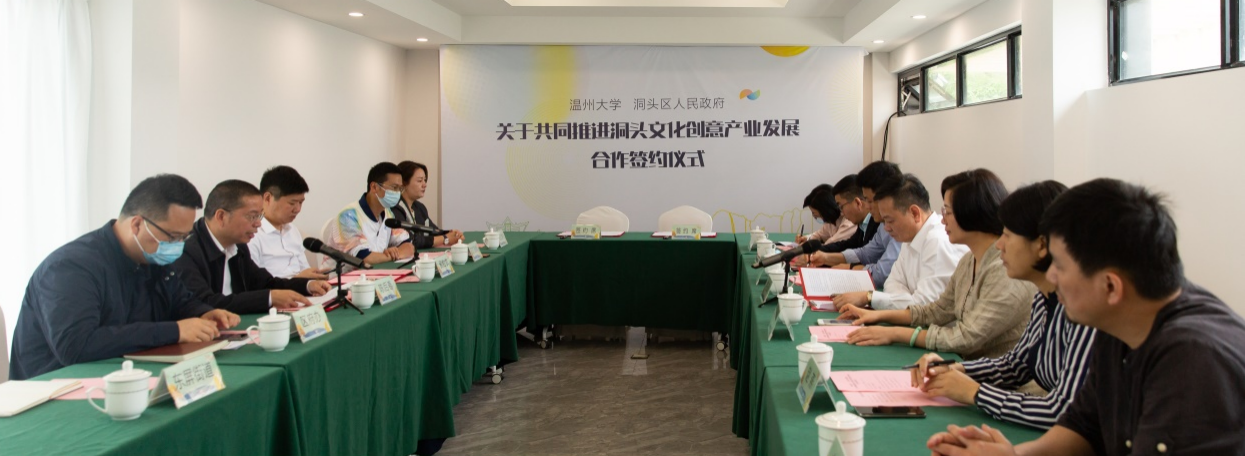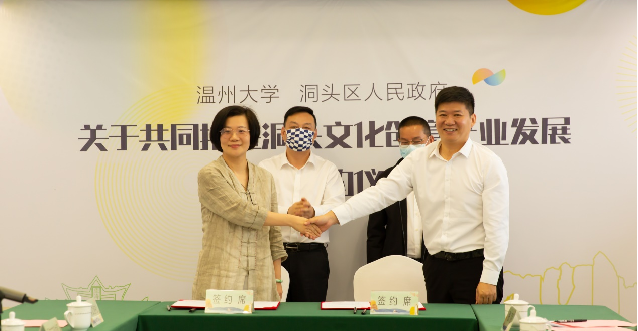 5月26日上午,温州市洞头区人民政府 beat365英国官方网站关于共同推进洞头文化创意产业发展合作签约仪式在洞头区文创中心顺利举行,beat365英国官方网站党委委员、副校长潘玉驹,洞头区人大常委会副主任陈后春、副区长贾约拿、文广旅体局副局长林慷慨、东屏街道相关负责人以及半屏文创中心负责人,beat365英国官方网站教务处副处长赵燕、beat365英国官方网站院长谢子静、党委书记叶正飞、副院长胡文超、视觉传达系主任刘俊、办公室主任张丽出席活动。活动由贾约拿副区长主持。