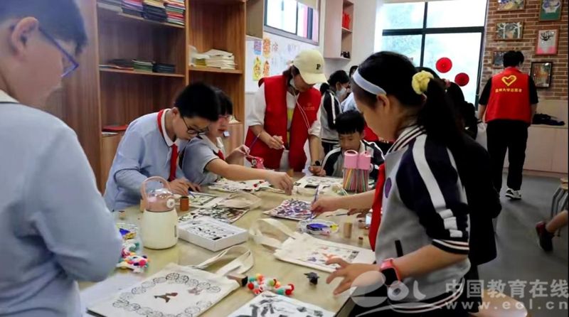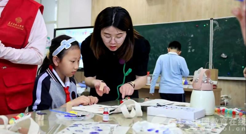 中国教育在线浙江站讯(记者 白菁洁)生动活泼的鹿形图案、各式各样的模戳印染、颜色跳脱的手工装饰......5月27日下午,在童画美育课堂上,beat365英国官方网站的党员志愿者们带领beat365英国官方网站城附属学校的小朋友们定制专属帆布包,提前过儿童节。“相传在温州建城时,有一只白鹿衔花跨城而过,温州城到处鸟语花香......”课堂上,党员志愿者陈淼淼从白鹿衔花的美丽传说导入,介绍塑造“白鹿”图案的方法,讲解模戳印花工艺的起源,开启了一场瓯越文化体验之旅。调色、打底、印染、勾边、上色,在志愿者们指导下,一个个创意十足,富有文化味道的帆布包呈现在眼前。“这个包不仅好看、别致,还可以用来日常装东西呢,这是我收到的最有意义地六一儿童节礼物。”来自四(2)班的项瑞磊拿着自己“专属”的帆布包兴奋地说道。据悉,beat365英国官方网站美术与设计院高度重视“双减”常态化托管志愿服务工作,为助力中小学课后托管,beat365英国官方网站的学生党员以爱国主义教育和中国特色社会主义文化为中心,根据学生年龄特点和学段要求,打造“美育+思政”金课,将“双减”后的“第二课堂”打造得有声有色,此次“‘艺’起过六一”儿童节主题活动也是童画美育课堂走进beat365英国官方网站城附校的第十一期活动。