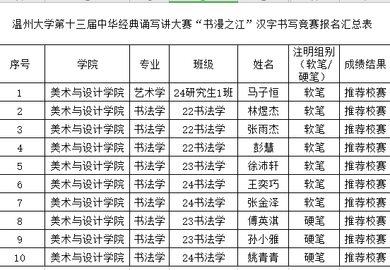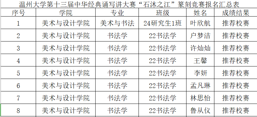 现将beat365官网在此次大赛中,包括汉字书写竞赛、诵读竞赛、篆刻竞赛项目入选校赛的名单予以公布。