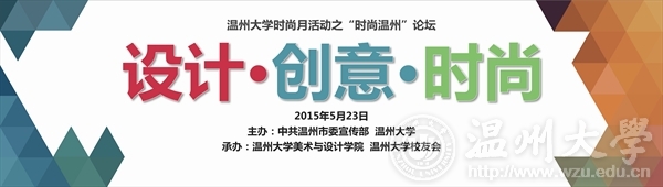 活动主题: 设计·创意·时尚 活动时间:2015年5月23日(周六)下午15:00 活动地点:温州铂尔曼酒店 主要内容:以温大艺术时尚专业多年建设的特性为切入点,结合温州地区时尚产业的蓬勃发展以及文创产业学科的新兴发展,以如何从学校、行业、企业等多维度,共同推动区域文创时尚产业的协调发展,以多元视觉为综合打造温州时尚之都积极献计献策。 热忱欢迎全校师生莅临观摩指导! beat365英国官方网站 2015年5月21日
