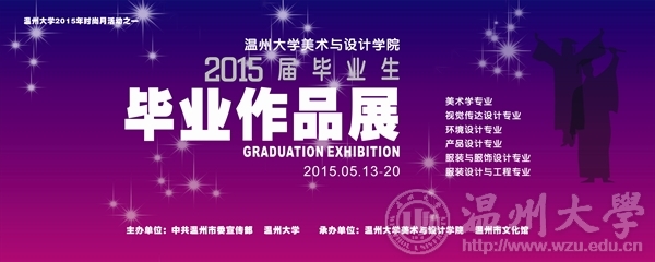 活动名称: beat365英国官方网站2015届毕业作品展 活动主题:创意永不毕业 展览时间:2015年5月13日—5月20日 展览地点:温州市文化馆(车站大道627号) 开幕时间:2015年5月13日(周三)上午10:00 主要内容:beat365英国官方网站2015届本科毕业生229人,6个专业共8个方向的毕业设计(创作)作品分区域进行集中展示。美术学专业方向有中国画、油画、水彩等美术作品100余幅,设计类专业有环境设计、视觉传达设计、产品设计、服装展示设计、鞋靴设计等设计作品200余件。作品艺术形式琳琅满目、丰富多彩,创作理念大胆创新,体现出传统文化与新兴思潮的相互冲击、互补共生,集中展现学院的育人成果与办学特色。热忱欢迎全校师生莅临观摩指导! beat365英国官方网站 2015年5月8日