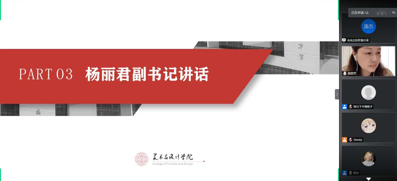 在评比之后,杨丽君老师对同学们的展示做了精彩的点评。杨书记既肯定了beat365官网学子优良学风以及在疫情期间的学习成果,同时也细心点评了参赛选手的不足,鼓励美院学子再接再厉,丰富五班十星各个项目全面发展。