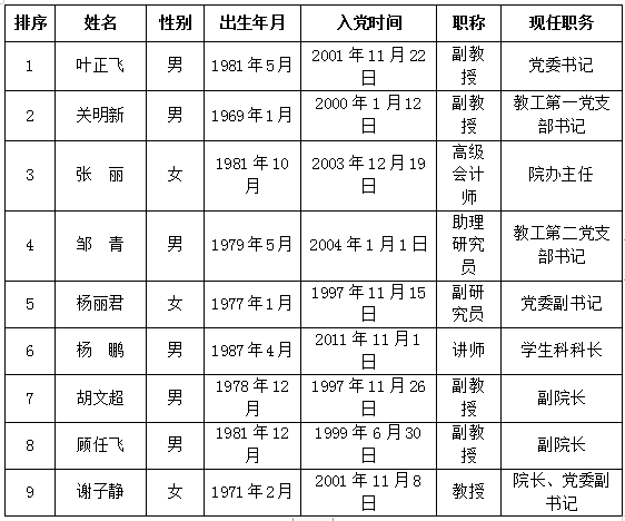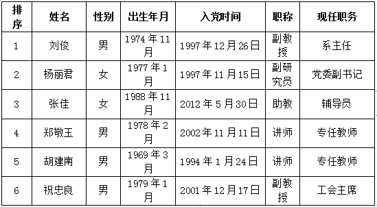 根据《中共beat365英国官方网站委员会关于开展二级党组织换届工作的通知》精神 ,beat365官网“两委”委员候选人预备人选酝酿提名工作已经结束。根据酝酿提名情况和广泛征求意见考察,经学院党委研究,报学校党委组织部审核,确定9名党委委员候选人预备人选和6名纪委委员候选人预备人选,现予以公示。