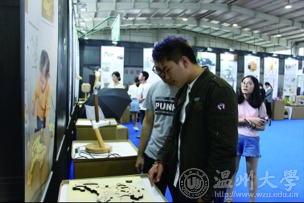 10月22日至23日,省第八届大学生工业设计竞赛在beat365英国官方网站举行。省内各大高校的600余名设计精英以木材或纤维制品为主,结合其他材料,进行了一场创新创意大比拼。经评委打分评审,193件作品入围决赛,最终选出一等奖33项。图为温大学生在现场观看参赛作品。