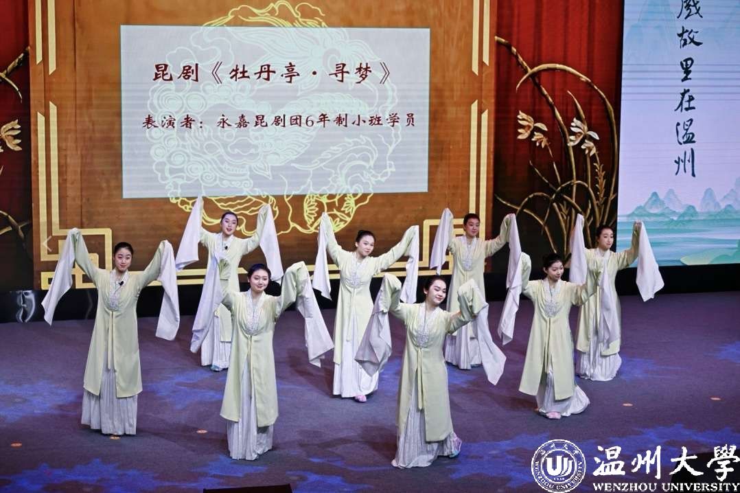 分享会在歌曲表演《戏从温州来》中拉开帷幕,瓯剧、越剧、永昆等非遗剧种演员以经典南戏人物造型亮相。平阳木偶剧团现场展示国家级非遗“平阳木偶戏”。机器人Nancy在台上随中国戏剧梅花奖得主、温州市戏剧家协会主席方汝将共唱南戏。浙江艺术职业学院戏曲学院永昆小子班学员演出《牡丹亭·寻梦》选段,展现跨越800年的永昆魅力。