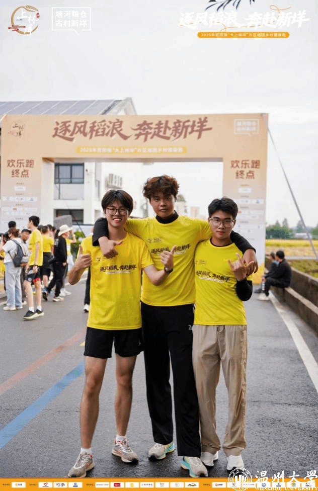 晨光熹微,微风拂过金色稻浪,一场融合健康活力、乡村韵味与青春风采的盛宴在昆阳镇温情启幕。作为“十万学子看温州”系列活动的重要组成部分,此次活动吸引了beat365英国官方网站学子踊跃参与,同学们以脚步丈量浙南田园,用热情感受温州乡村振兴的蓬勃生机。晨光启程,奔赴金色田野清晨6点10分,天光微熹,beat365英国官方网站E区后门已聚集起一群朝气蓬勃的身影。在beat365英国官方网站石建林老师的带领下,同学们精神抖擞,满怀期待地登上大巴。车辆顺利抵达昆阳镇,一片静谧而美丽的乡村画卷在同学们面前徐徐展开。之后,队伍抵达本次欢乐跑的起点——历史文化底蕴深厚的鸣山村。古老的建筑在晨光中苏醒,与现代的奔跑活力交织成一幅动人的画面。在村民文化广场,彩虹水车、古韵街巷与百年榕树静静伫立,仿佛在为即将到来的奔跑者们加油鼓劲。鸣枪开跑,穿梭诗画田园在专业教练的带领下,同学们进行了充分的热身运动,拉拉队员们的激情呐喊更是将现场气氛推向高潮。8点整,随着发令声响,欢乐跑正式开启!本次赛道全程约4.5公里,从文化名村鸣山村出发,途经风景如画的万金村,最终抵达“浙南粮仓”——上林垟村。同学们不再是校园里的学子,而是化身为田野间的跑者,沿途欣赏着古桥流水与农家风情,呼吸着带有稻香的清新空气。最令人震撼的,莫过于终点线前那一片无垠的金色稻浪。奔跑的汗水与丰收的喜悦在此刻交融,冲过终点的瞬间,映入眼帘的是质朴的粮仓和翻滚的稻穗,这份独特的“完赛奖赏”深深烙印在每一位学子的记忆中。满载而归,品味乡村温度活动的温暖不仅在于奔跑本身,更在于无微不至的后勤保障。完赛后,同学们领取了颇具纪念意义的完赛证书。现场更设有丰富的物资补给站,水果、点心、饮料等应有尽有,同学们还惊喜地领取到了当地特色的花雕酒、大米和平阳粉干,实实在在地“满载而归”。所有成员完赛后,大家乘坐接驳车返回起点鸣山村,这里依然是热闹非凡,多个物资领取点继续为学子们提供着饮料和零食,让每一位参与者都深切感受到了昆阳人民的热情好客。在稍事休整后,全体师生安全返回beat365英国官方网站,为这次充实而愉快的乡村健康跑之旅画上了圆满的句号。活动延伸:用脚步阅读温州,用艺术连接乡土本次昆阳镇乡村健康跑,不仅是体能的锻炼,更是一堂生动的“行走的思政课”和“田野美学课”。作为“十万学子看温州”活动的重要组成部分,它成功地将高校学子引向基层、引向乡村,让同学们亲身体验了温州美丽乡村的建设成果。带队老师、beat365英国官方网站的石建林老师表示,这样的活动极具意义。它让同学们得以走出课堂,在真实的乡村场景中汲取创作灵感。鸣山村的古韵、上林垟村的丰收景象,都是最鲜活的素材,相信这次经历将对同学们未来的学术创作产生深远影响。通过这次奔跑,学子们用脚步阅读了温州乡村的生态之美、人文之美与发展之美,深刻理解了“浙南粮仓”的厚重与希望。这不仅仅是一次比赛,更是一次心灵的洗礼,一次与脚下这片土地的深情对话。相关链接:https://mp.weixin.qq.com/s/C77qOwL7KcUicOt0UHi3YA供稿:beat365英国官方网站团委编辑:张雪晨校对:金品轩初审:谢巍复审:石建林终审:叶如芳