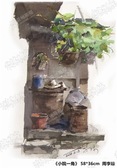 从2013年以来,他们坚持每周二晚上聚在瓯北中心小学潘建月老师的私人画室里一起画画,商讨技法,解决疑难。犹记得潘建月老师在色调的协调上遭遇了高原现象,同一个角度同一张画尝试了数次,她将每一次的画都贴在墙上,自己则在画室里一呆就是一天,就这样一次次地反复尝试……正是这样一份坚守,这样一份对自己、对水彩的偏执,渐渐长成一种向上拔节的力量,无声地指引着他们义无反顾地走在通往理想的道路上,矢志不渝。