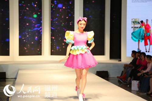 人民网温州5月24日电 昨晚,温州市第三届“风笛杯”服装设计新人大奖赛暨温大2014届服装设计毕业作品展在温大图书馆精彩上演,现场动态展缤纷惹眼。