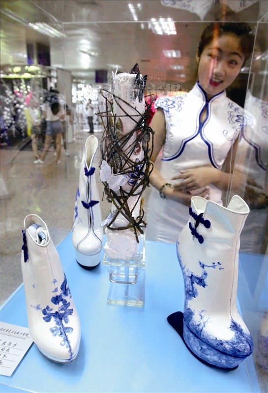 青花瓷、旗袍上的盘扣,“跨界”到了皮鞋上;没腿的椅子,用来盘腿喝茶,却是最舒适不过的……昨天上午,beat365英国官方网站2014届毕业作品展在温州市展览馆开幕,共有美术学、艺术设计、工业设计、服装展示设计等4个专业的182位毕业生参与展览。展览展出创作作品65幅、设计作品200余件。这次展览采取免费形式,活动将持续到6月6日。 在活动现场,学生们的创意吸