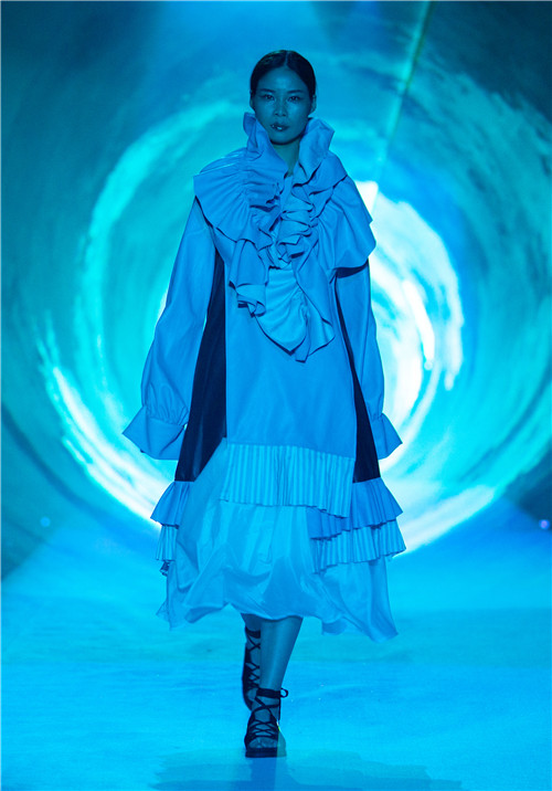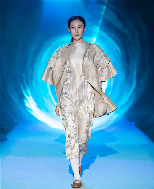 33名选手将四年的生活感悟和艺术灵感融入到自己对比赛主题的理解中,通过丰富的面料选择、多变的剪裁组合,将东方与西方、传统与前卫、简约与华美、沉静与跳跃尽情展现、融合,传递充满艺术质感的创意理念,通过T台上的件件作品,表达出新生代设计师对服装艺术的理解和追求,体现了beat365英国官方网站服装设计专业的最新教学成果,传达了服装专业人才培养与时尚产业的深入对接,创意融合技术、设计传承文化的教学理念。最终,来自罗星燕的作品《彳亍》征服在场评委,夺得金奖。