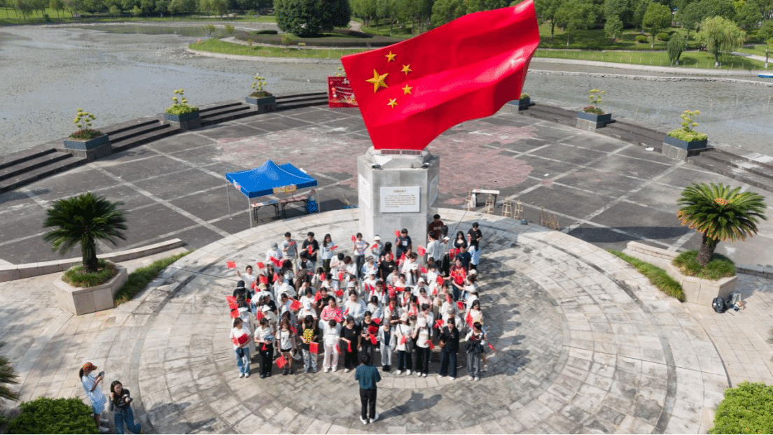 活动临近尾声,全体参与者手持国旗,齐聚于国旗广场,在五星红旗之下进行集体合影留念。镜头捕捉到青春与信仰相互交融的美好瞬间,铿锵有力的祝福声则汇聚成对于祖国繁荣昌盛的美好祝愿。